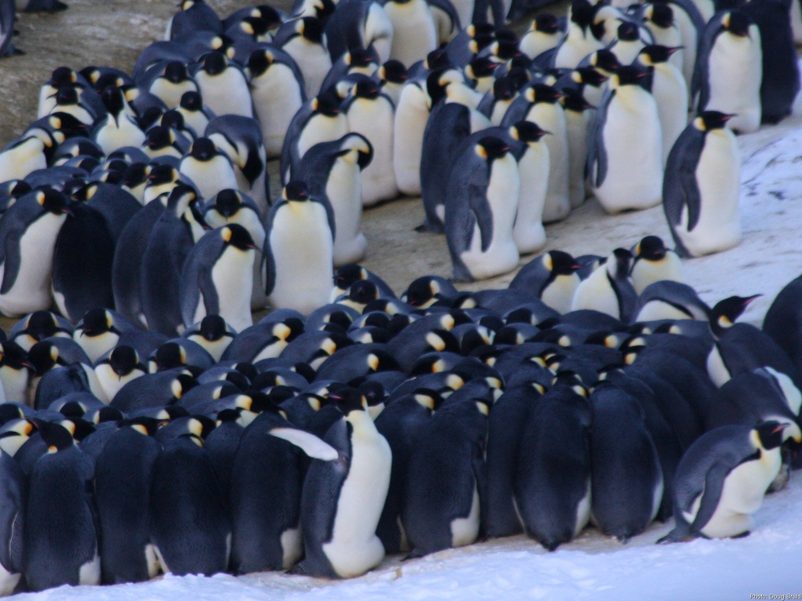 As many of us learned in elementary school, emperor penguins live in Antarctica. They survive in temperatures as low as –60°C (–75°F) and winds that can reach hurricane speeds of 125 mph. During the Antarctic winter, typically from May through August, the males remain behind with the eggs, balancing them carefully on their feet while the females travel to the sea to feed.