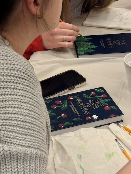 Family Home Evening was definitely one of the highlights of my week. Every Monday our YSA (young single adult) ward hosts some kind of activity, and this past week we decorated copies of the Book of Mormon. Tables were covered with paintbrushes, paints, and other supplise. It was actually really fun seeing how differently everyone chose to decorate theirs, some people went the artistic route, others kept it simple, and a few went completely all out.
